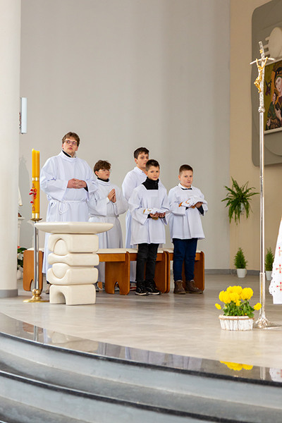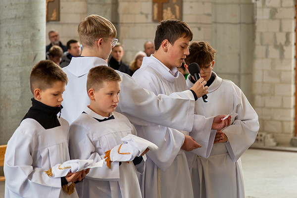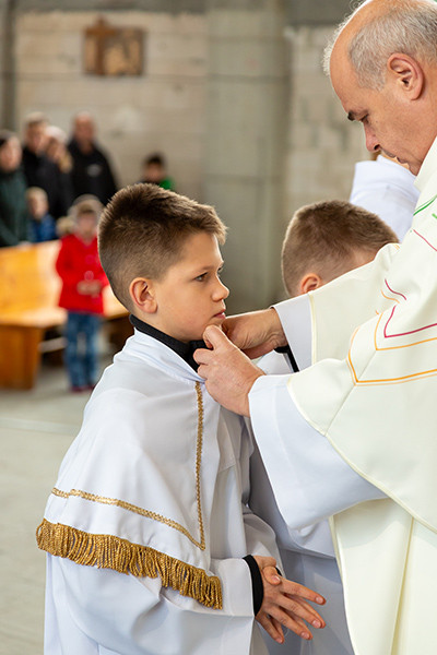 Dnia 23 listopada 2025r w Uroczystość Jezusa Chrystusa, Króla Wszechświata podczas Mszy Św. o godz. 11:00 w naszej parafii, odbyło się przyjęcie do Liturgicznej Służby Ołtarza z obrzędem błogosławieństwa kolejnych ministrantów ,lektorów i ceremoniarza. Ministranci : Bartłomiej Szczepański i Nikodem Chaława. Lektorzy: Szymon Stanilewicz i Franciszek Gryc. Ceremoniarz: Ksawery Kucharzewski/ Wszystkie zdjęcia dostępne u ks.Pawła lub u p.Sławka ze scholii /Fot. www.fotomaj.pl/